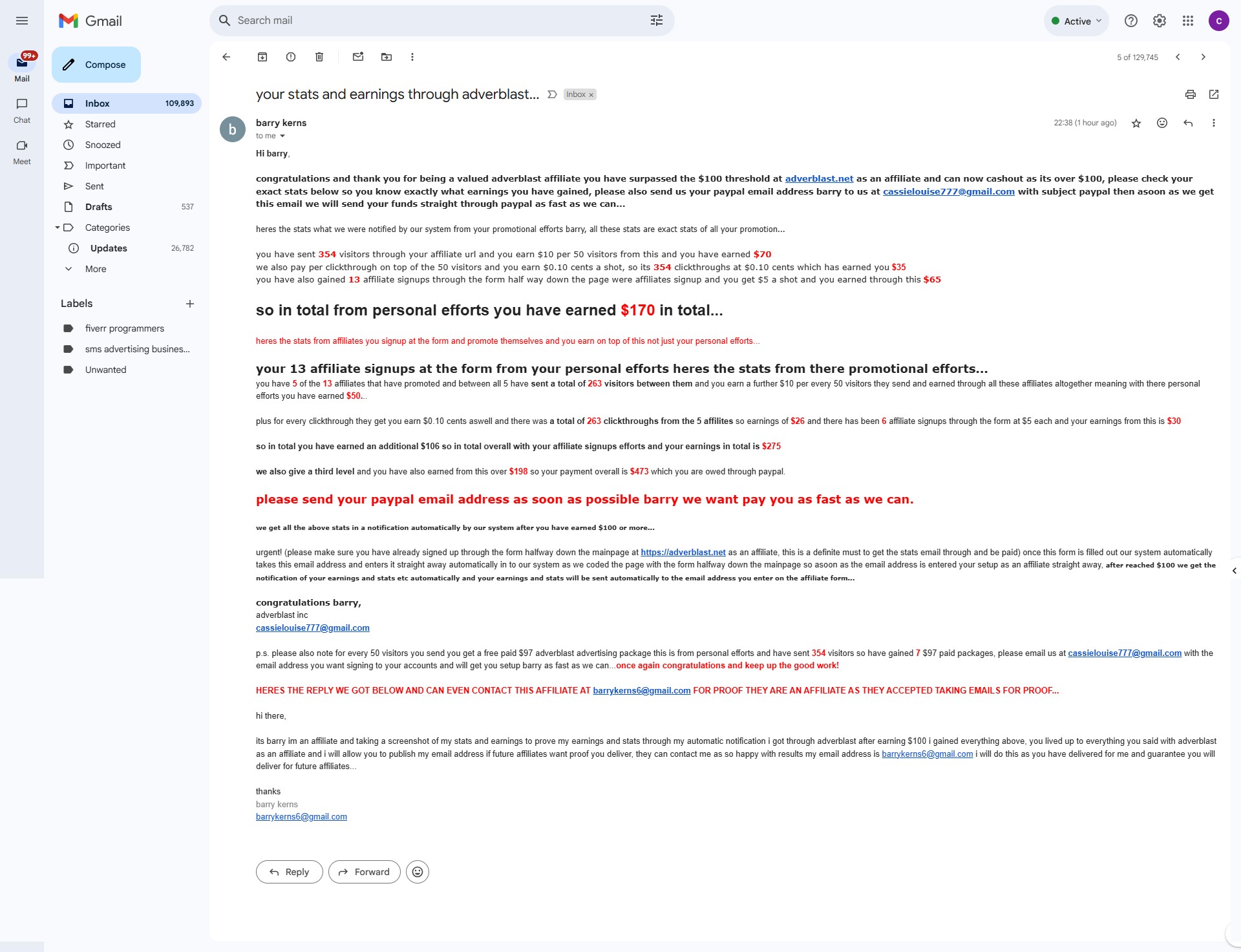 EMAIL ADDRESS AFTER REACHING OVER $100 FOR